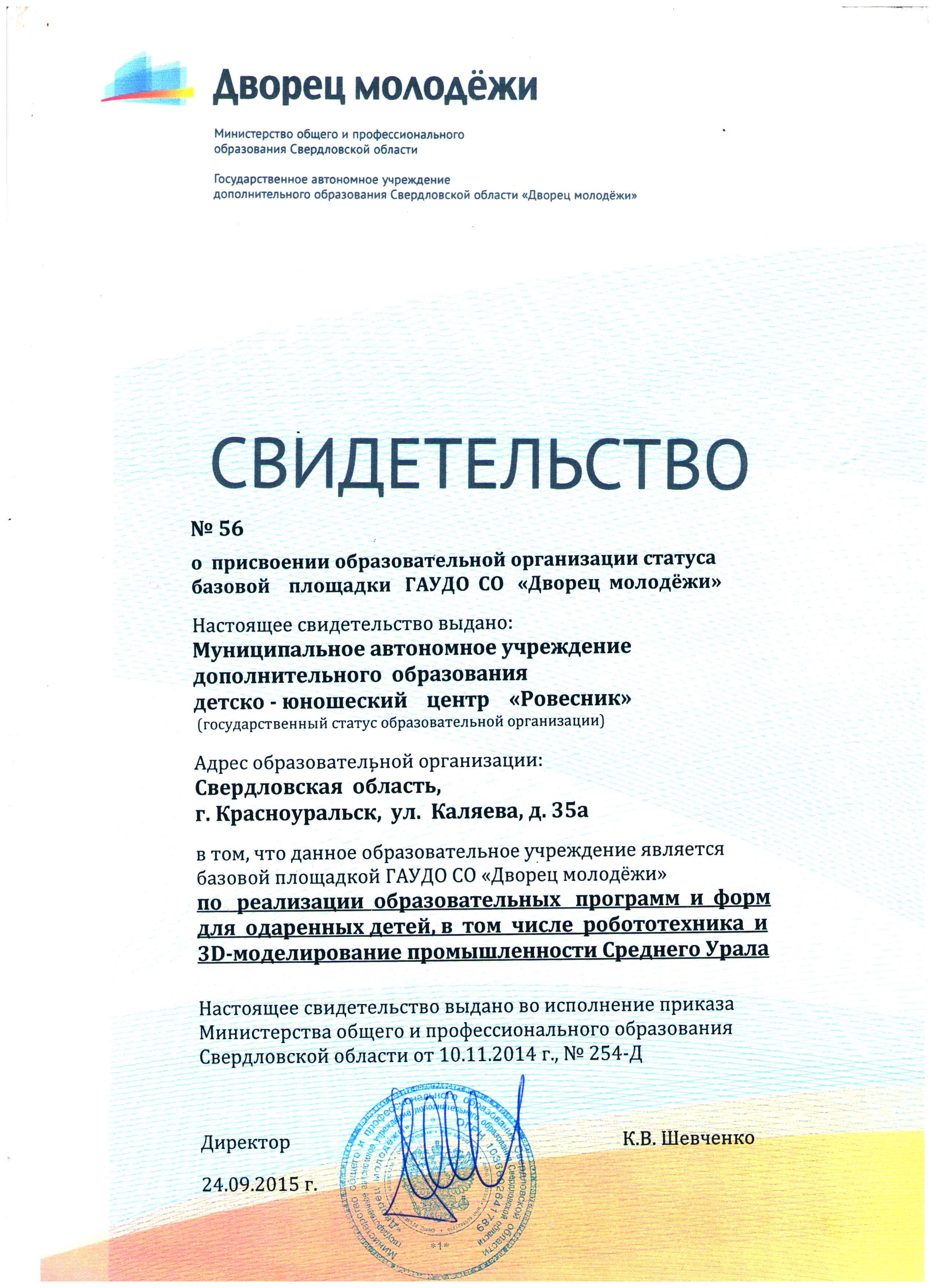 "Реализация образовательных программ и форм для одаренных детей, в том числе робототехника и 3д-моделирование промышленности Среднего Урала"
